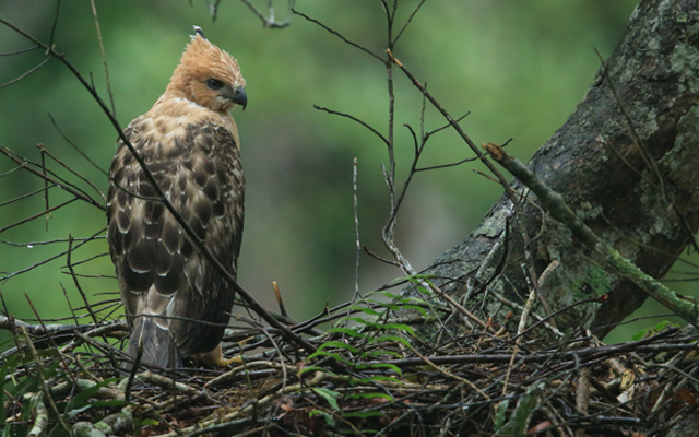 Javan Hawk-Eagle is an endangered raptor endemic to Indonesia, symbolizing the national's logo of Garuda.